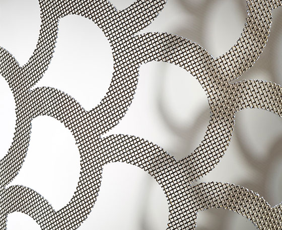 La tessitura high-tech crea forme dinamiche, geometrie inattese, superfici che vibrano alla presenza della luce e in grado di adattarsi anche alle più complesse curvature del vetro. Una materia viva che si modella attorno ad un’idea: la tua.