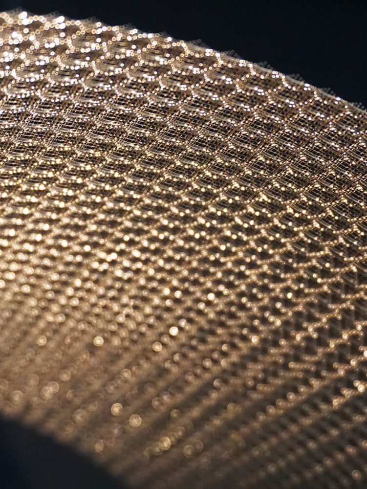 Born from an intuition in 2010, it transforms a technical mesh into a scenic, light, and luminous material.